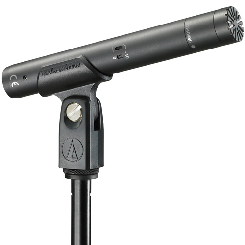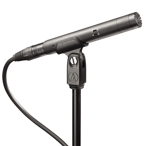 ① AT4051b為心形指向性電容話筒,使用專業調音臺上48V幻象供電工作。