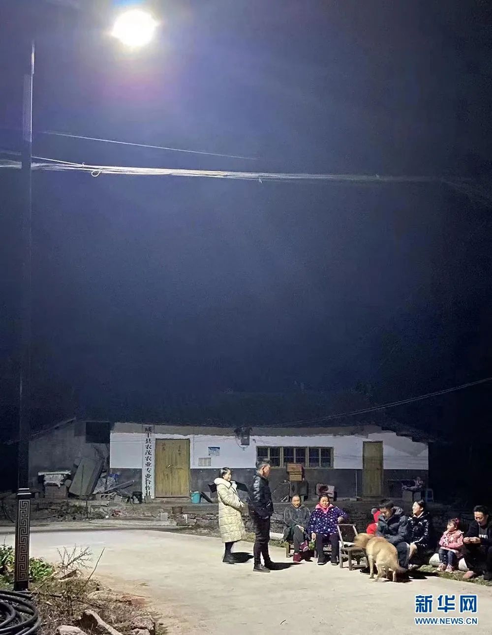 五龍坪村村民在明亮的路燈下相聚。新華網發