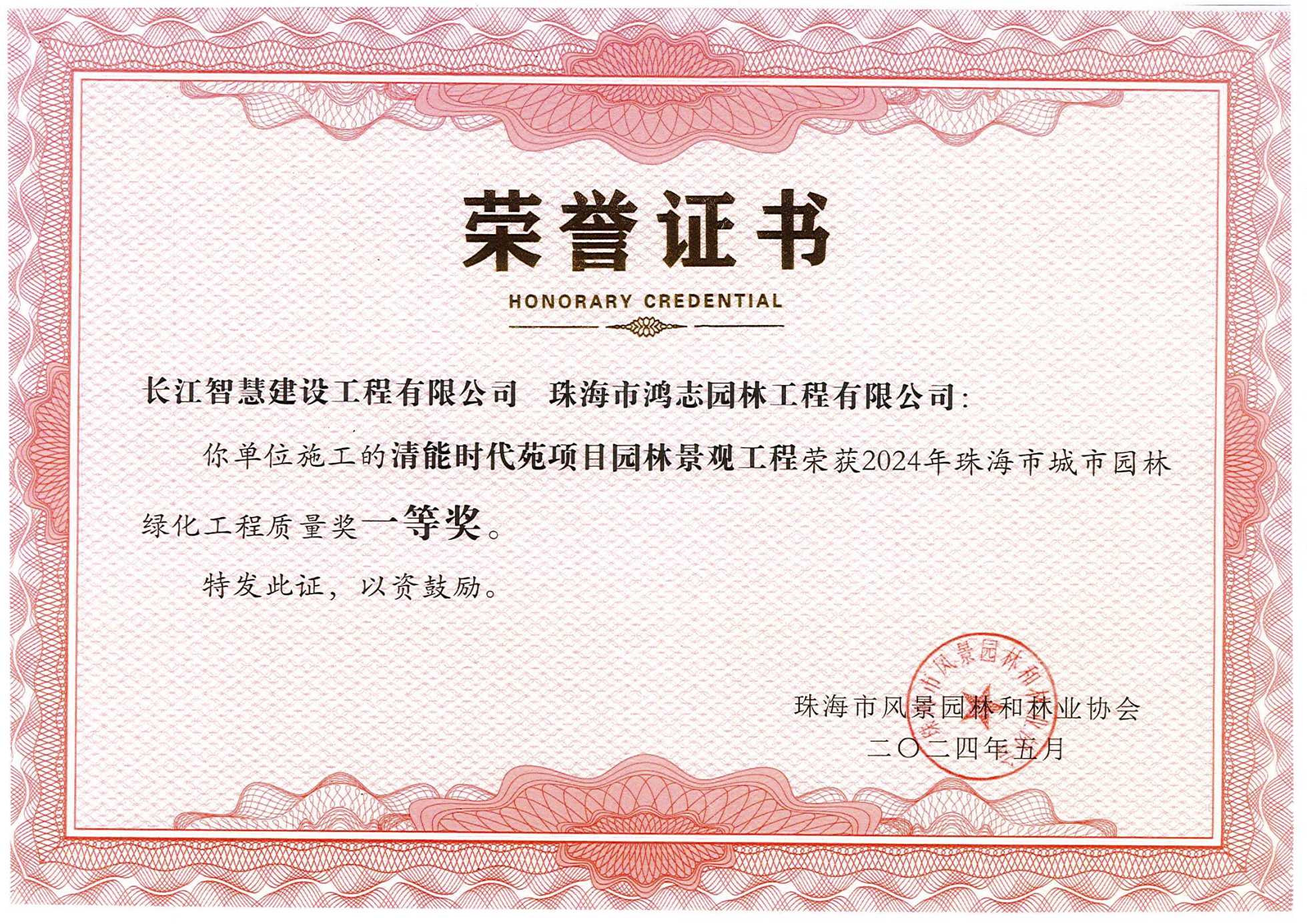 珠海市城市園林綠化工程質(zhì)量獎(jiǎng)一等獎(jiǎng)